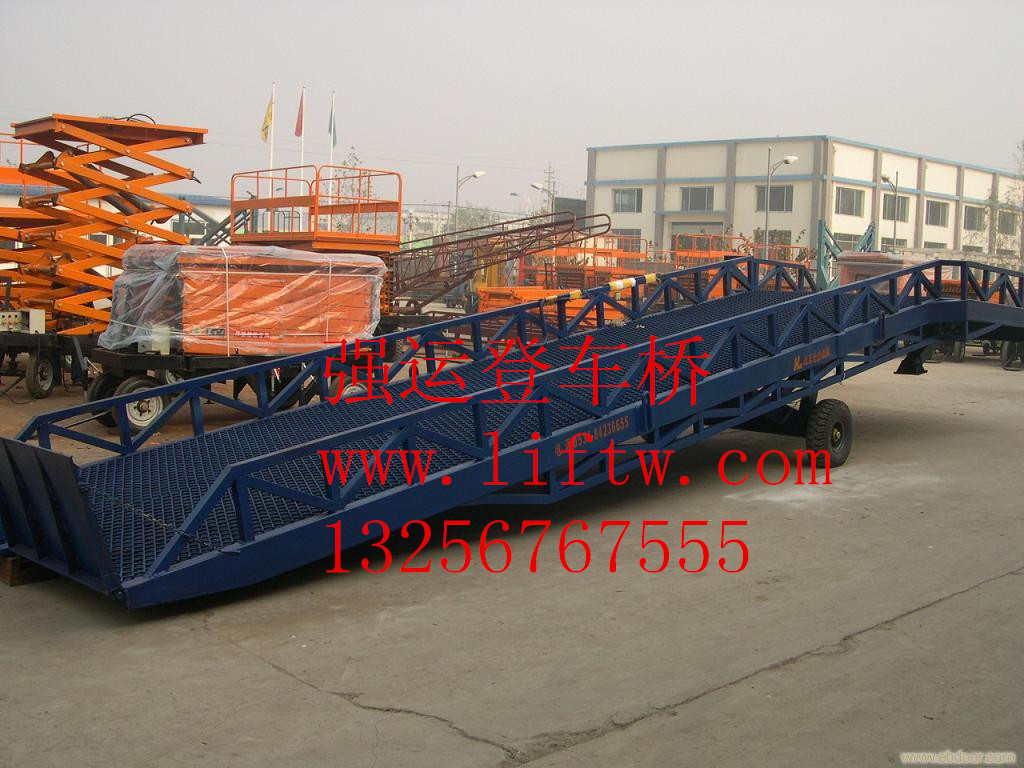 登車橋是用于叉車與貨車之間的搭橋設(shè)備,方便裝卸貨物。最大動(dòng)負(fù)載:6T 最大靜負(fù)載:6T 最大寬度:2M 最大長(zhǎng)度:4M。分類很多,一般分為移動(dòng)登車橋和固定登車橋。