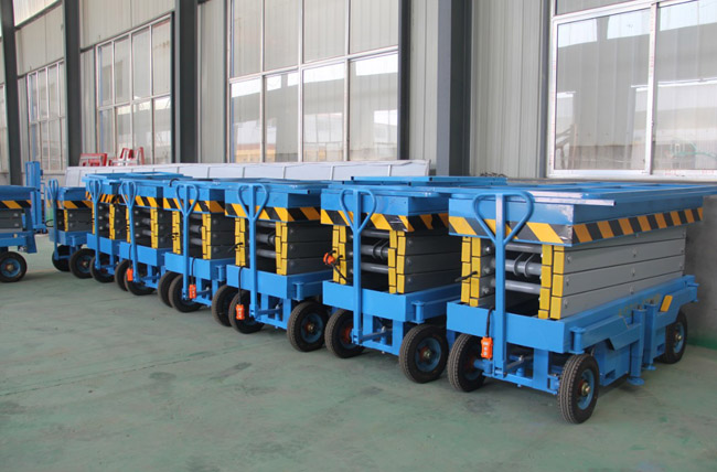 移動升降機(6米8米10米12米14米16米18米移動式升降機)根據(jù)需求可選為二相、三相、電瓶、柴油機為升降動力,特殊場所也可選用防爆電  機、電器等。該升降機控制方式為電動上、下控制升降,手、電兩用或遙   控器控制,在停電時仍可使用。該系列升降機(6米8米10米12米14米16米18米移動式升降機)具有移動靈活,升降平穩(wěn),載重量大,操作方便等特點,  移動升降機廣泛用于工廠、糧庫、機場、加油站、機關、碼 頭、野外電力、路燈維護及建筑裝修等各種行業(yè)。移動升降機可根據(jù)用戶使用要求設計制造。